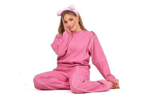 صُممت هذه المجموعة الأنيقة لعشاق الأناقة والسهولة، وهي مثالية للاسترخاء والنوم. حسّني روتينكِ الليلي مع بيجامة سيمبليسيتي فوشيا لاين - فكل ليلة تستحق لمسة من الفخامة!