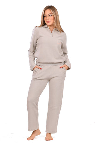 نقدم لكم بيجامة سيمبليسيتي الرمادية ذات الياقة، المزيج المثالي بين الراحة والأناقة. تتميز هذه البيجامة المصممة بإتقان بما يلي: