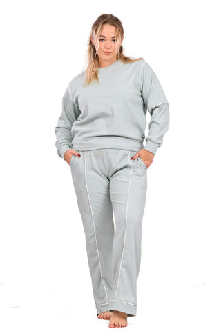 استمتع براحة لا مثيل لها مع بيجامة سيمبليسيتي لايت جرين لاين. صُممت هذه البيجامة لراحة لا مثيل لها، وتتميز بلون أخضر فاتح هادئ، مما يضفي لمسة من الهدوء على مجموعة ملابسك المريحة.