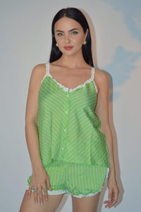 استمتعي بمزيج مثالي من الأناقة والراحة مع بيجامة كارولي القصيرة. مصنوعة من مواد صناعية ١٠٠٪، هذه المجموعة خفيفة الوزن وجيدة التهوية تضمن لكِ شعورًا بالانتعاش خلال الليالي الدافئة.