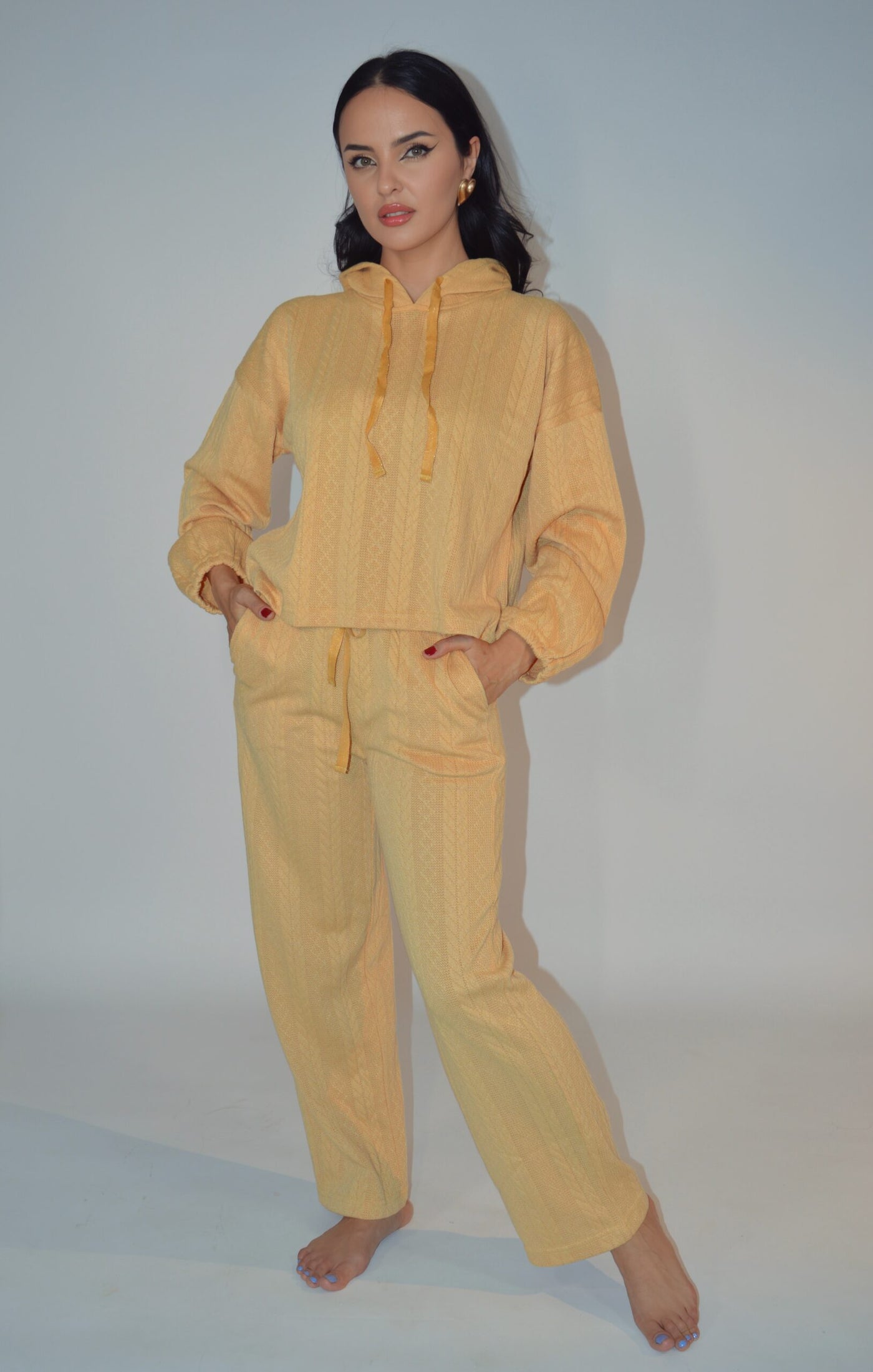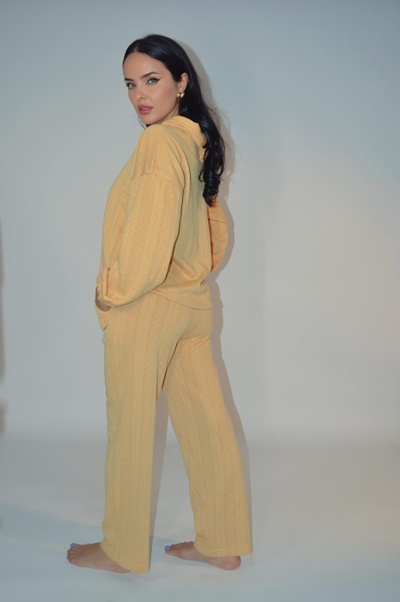 نقدم لكم طقم بيجاما تشيزي بليس، خياركم الأمثل لراحة وأناقة لا مثيل لهما في المنزل. يتميز هذا الطقم الرائع المكون من قطعتين بجزء علوي واسع بأكمام طويلة، مثالي للاسترخاء أو الاستمتاع بليلة دافئة في المنزل. مصنوع من مواد صناعية 100%، يوفر ملمسًا ناعمًا وجيد التهوية يغمركم بالسعادة. بيجاما تشيزي بليس مثالية لمن يرغب في إضافة لمسة من الاسترخاء والبهجة إلى مجموعة ملابس النوم الخاصة به، فهي احتفال حقيقي بالراحة والاسترخاء. استمتعوا بتجربة الاسترخاء اليوم!