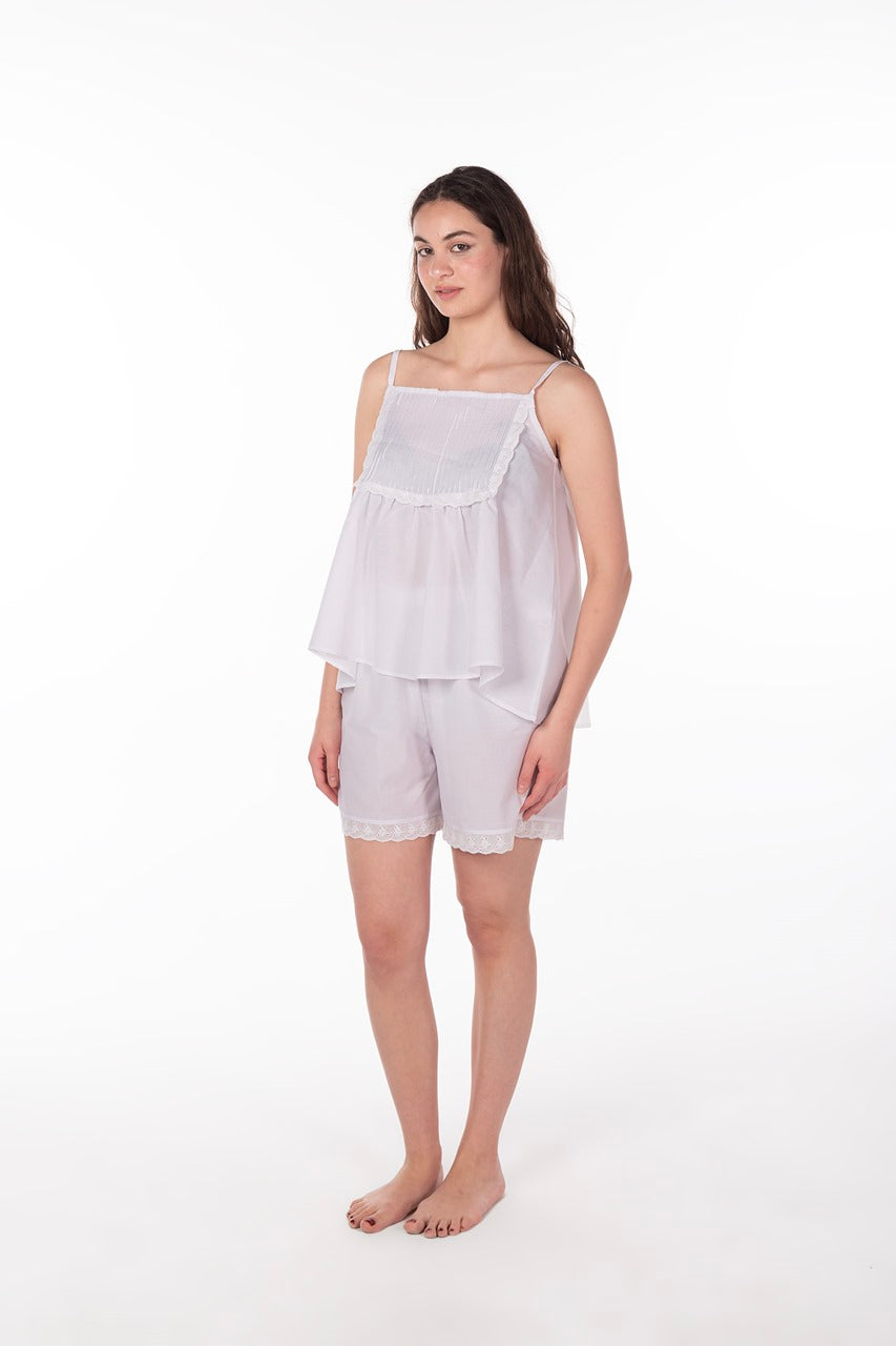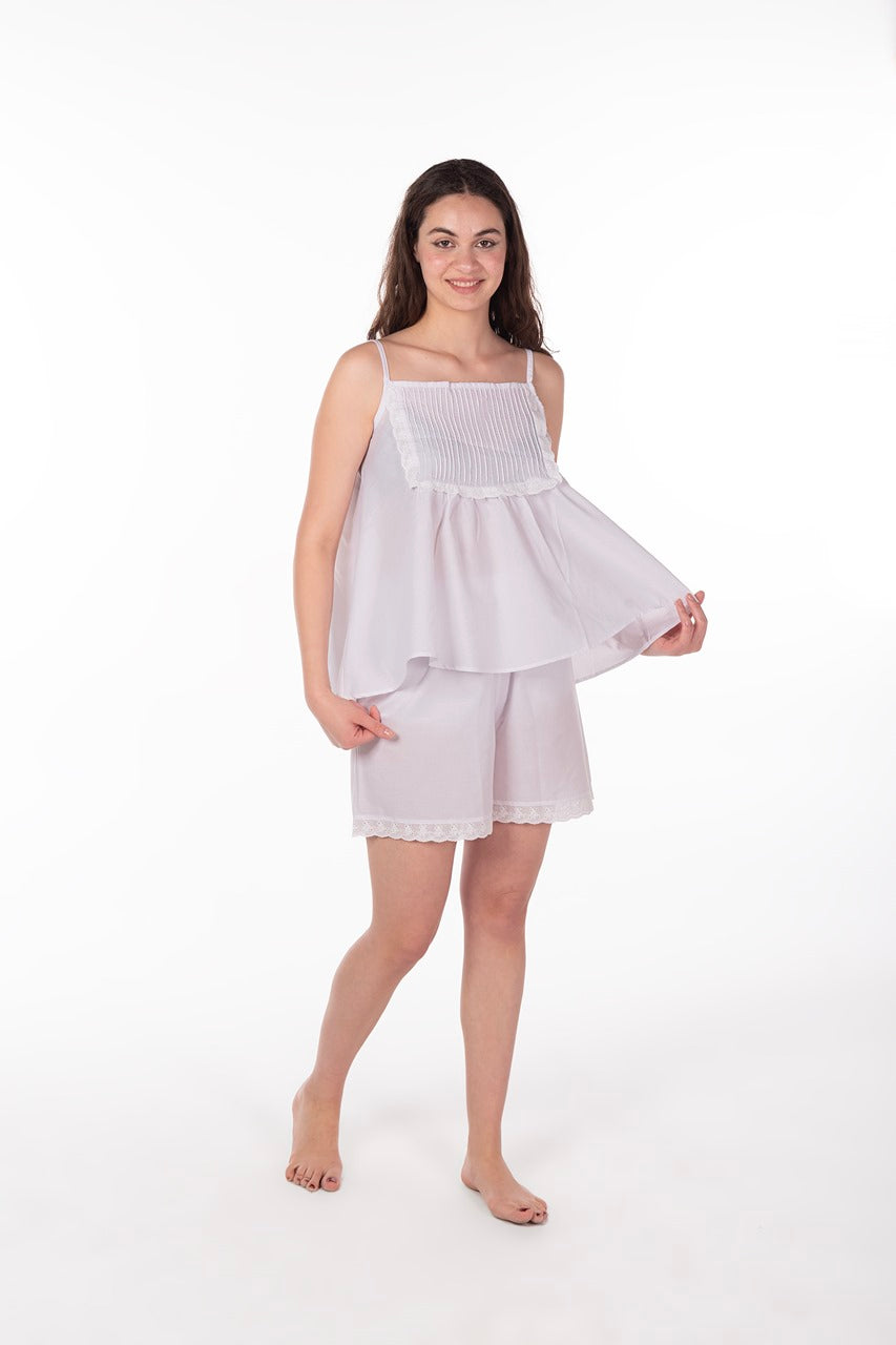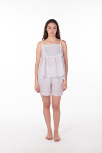 Elevate your sleepwear collection with this essential piece, offering a blend of restful nights and stylish relaxation. Experience the ultimate in comfort with our Thin Strap Short White Pajama.